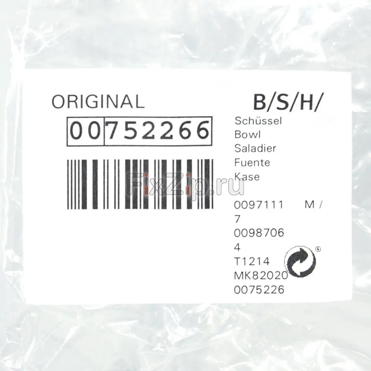 Bowl for food Processor Bosch MC812 MK82 752266 Bowls MK82010/01 MK82020/01 MC812S734G/01 MC812S814/01 MC812S820/01 MC812S844/01 MC812W501/01 ...