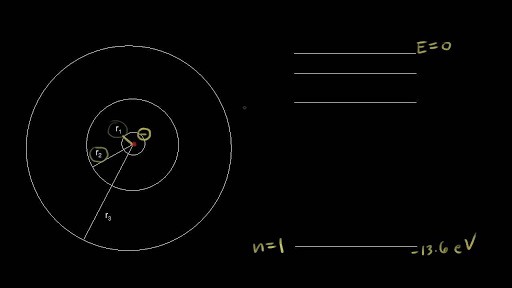 Atomic Energy Levels (video) | Khan Academy These dashed lines represent the different energy levels the electron can have while in the atom. We like representing these energy levels with an energy level diagram. The energy level diagram gives us a way to show what energy the electron has without having to draw an atom with a bunch of circles all the time.