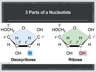 Answered: What are the 3 parts of a nucleotide? | bartleby What are the 3 parts of a nucleotide? Question. What are the 3 parts of a nucleotide? ... What are the three parts of a nucleotide? - Answers A nucleotide is made of three parts. Those parts are: a five carbon ribose sugar, a phosphate molecule, and a nitrogenous base (adenine, guanine, cytosine, or uracil). Related questions What are... What Are the Three Parts of a Nucleotide? - Reference.com The three subunits of a nucleotide are a nitrogenous base, a sugar and a phosphate group. Nucleotides are the building blocks of DNA and RNA molecules. One nitrogenous base, known as purine, is comprised of adenine and guanine. The other nitrogenous base is pyrimidine, which is cytosine and thymine. These bases combine to form DNA. Name the 3 parts of a Nucleotide? - Answers Nucleotides are Sugar+Phosphate+Nitrogen base. What are the 3 parts to a nucleotide? The nitrogenous base, the sugar and phosphate backbone. Out of the 3 parts which make up a nucleotide molecule...