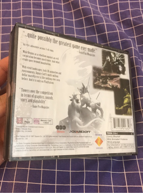 Final Fantasy 7 Misprint & 8 PS 1 Black Label No Manuals | eBay Final Fantasy VII 7 (Sony PlayStation 1 1997) PS1 PSOne 2 3 Black Label MISPRINT $179.95 + $3.95 shipping Seller 99.7% positive Nintendo Switch Lot 9 Mario, Luigi, Super Smash, Final Fantasy, Bioshock, MK 11 $198.50 47 bids Free shipping 29 watchers Final Fantasy VII 7 (Sony PlayStation 1, 1997) PS1 PSOne PSX 2 3 Black Label $129.95