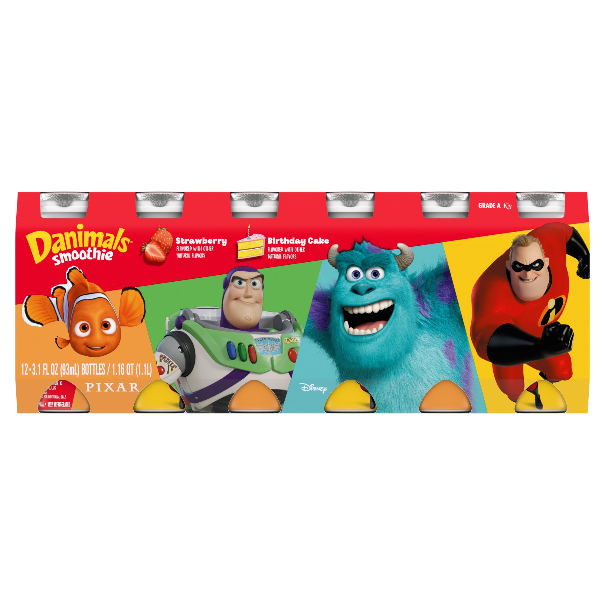 Danimals Swingin' Strawberry Banana Smoothies, 3.1 oz Bottles Yoplait Kids Low-Fat Disney Frozen Strawberry & Blueberry Yogurt Value Pack, 8 ct. $4.10 each ($0.13/oz) Danimals Strawberry Explosion Squeezable Yogurt, 3.5 oz Pouches, 4 pk. $4.24 each ($0.31/oz) Add to list. Danimals Strawberry Explosion & Birthday Cake Variety Pack Smoothies, 3.1 oz Bottles, 12 pk. $5.53 each ($0.15/oz)