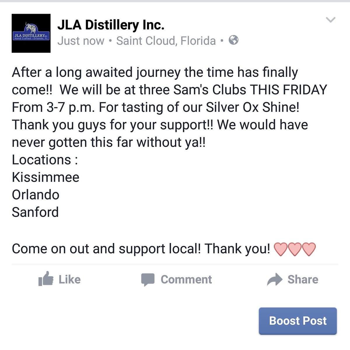JLA Distillery Orlando - Facebook JLA Distillery Orlando, Orlando, Florida. 7,544 likes · 1 talking about this. We are a family-owned Distillery in Orlando, Florida. We produce various types of liquors such as Whiskey, Vodka, Gin,... JLA Distillery Orlando