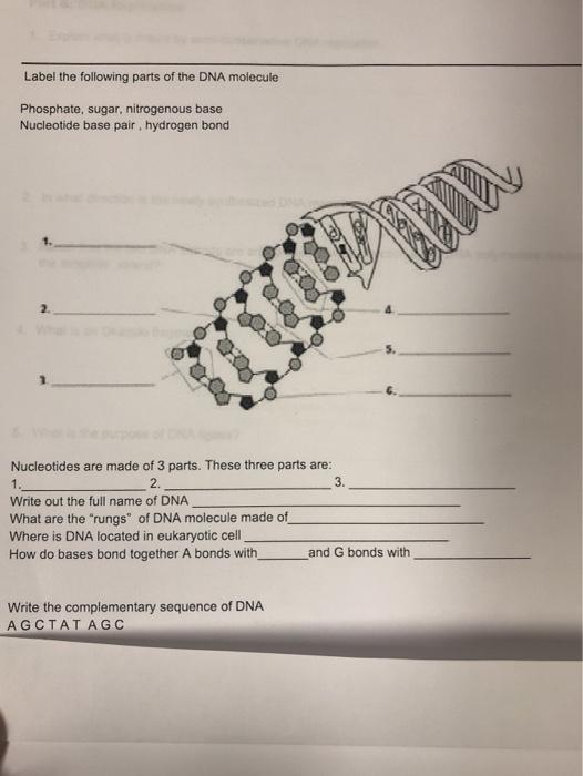 DNA and RNA (With Diagram) - Biology Discussion The ratio of purine and pyrimidine bases is 1: 1. The distance between two subsequent base pairs in the polynucleotide chain is 3.4 Å. Each turn of the two polynucleotide chains is completed after 10 base pairs i.e., a distance of 34 Å. The distance between the axis and the sugar phosphate region is about 10 Å. The helical coiling is right handed. How to Label a DNA Structure | Sciencing The DNA molecule comes in a twisted ladder shape called a double helix. DNA is made up of subunits known as nucleotides. Each nucleotide is made up of a sugar, a phosphate, and a base. Four different bases make up a DNA molecule, classified as purines and pyrimidines, which are nucleotides that form the building blocks of nucleic acids.