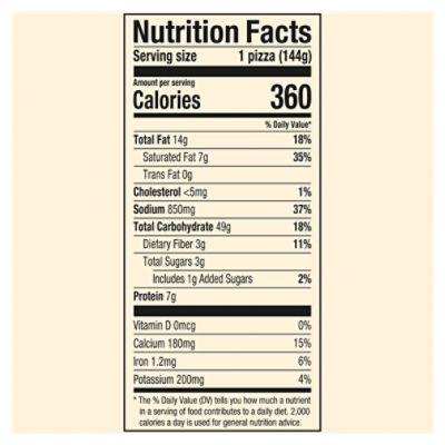 Frozen Pizza Calories and Nutritional Information - FatSecret Meat and Vegetable Pizza (Frozen, Cooked) Per 1 serving 2 servings per 10.9 oz package - Calories: 489kcal | Fat: 25.54g | Carbs: 44.50g | Protein: 19.97g Other sizes: 1 package 22.85 oz pizza - 1777kcal , 1 oz - 78kcal , 1 serving 5 servings per 22.85 oz package - 356kcal , more... JACK'S Original Thin Crust Sausage & Pepperoni Frozen Pizza 15 ... See nutrition information for total fat, sat fat & sodium content. Nutritional Compass. Nestle - Good food, good life. Thoughtful Portion: Pair one portion of ... Frozen Pizza Nutrition Label - This Nutrition Frozen Pizza Nutrition Label Last Updated: August 08, 2022 Learn more information about frozen pizza nutrition label. In this article we'll discuss frozen pizza nutrition label. GMO-free Food, 2.5 Liters Of Water And 10,000 Steps Per Day - Nutrition Or Marketing We Cook Neapolitan Pizza At Home Ready Dough Pizza Inc. Recalls Pepperoni Pizza Products Produced ... Some of the products have no ingredient label and others have the wrong ingredient label. The frozen Cuban-style pizza items were produced from Jan. 12, 2022, through July 13, 2022. The following products are subject to recall l [ view labels ]: 14-oz. box packages containing "PIZZA CUBANA CUBAN STYLE PEPPERONI PIZZA".