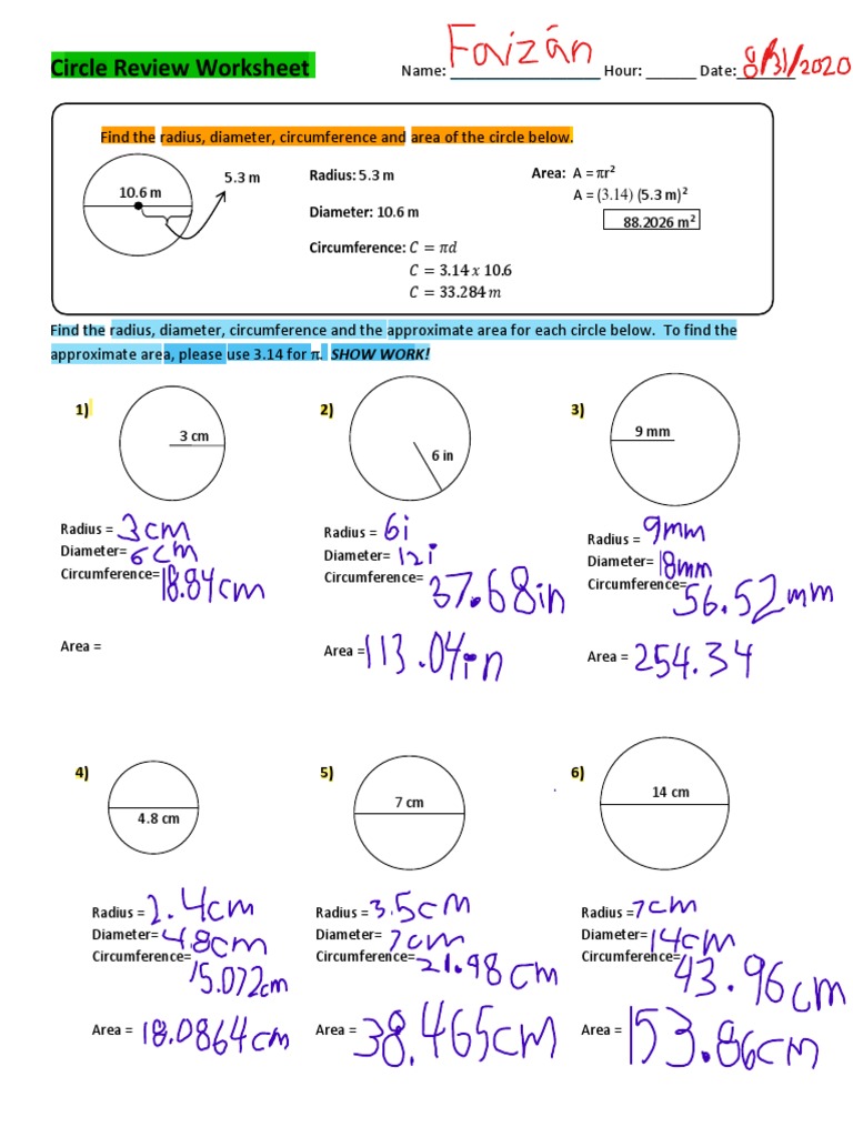 Radius and diameter worksheet answers 7th grade