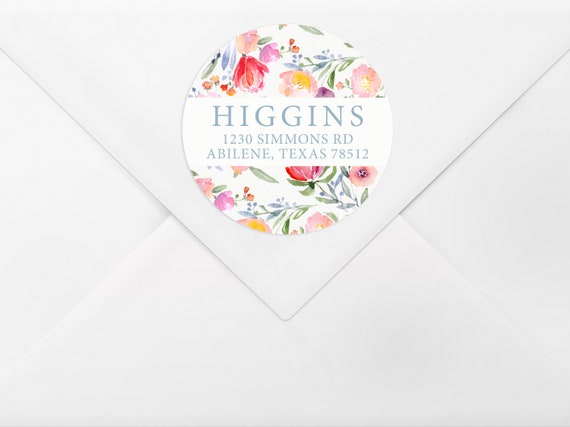 Return Address Label - Floral Round Return Address Label - Personalized Return Address Label - Watercolor Flowers