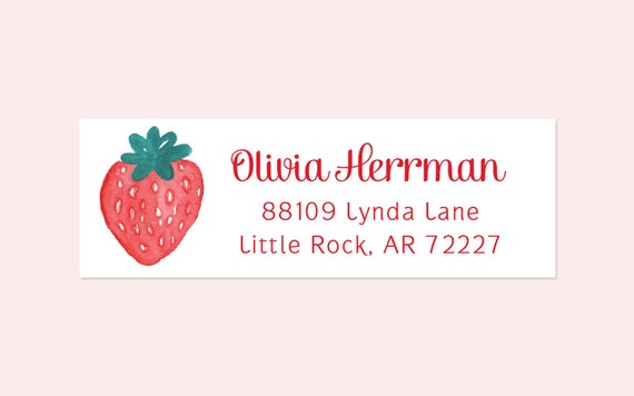 Strawberry Return Address Label, Strawberry Shortcake Label, Cute Strawberry Address Label, Fruit Address Label, Watercolor Strawberry
